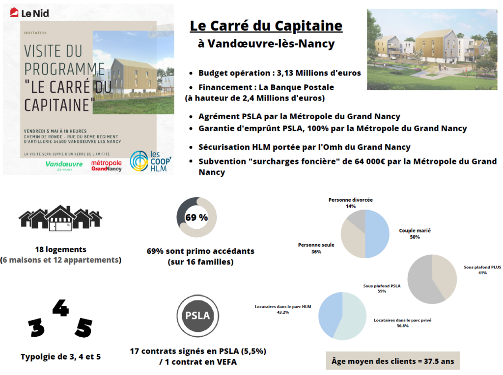 Vendredi 5 mai 2023, l’équipe du Nid a eu le plaisir d’accueillir l’ensemble de ses partenaires à une visite de l’opération neuve de 18 logements « Le Carré du Capitaine » à Vandœuvre-lès-Nancy sur la ZAC Bianca Maria qui touche à sa fin.