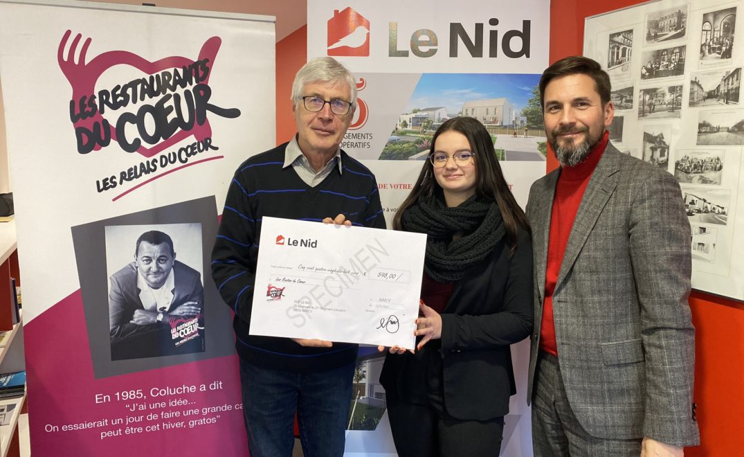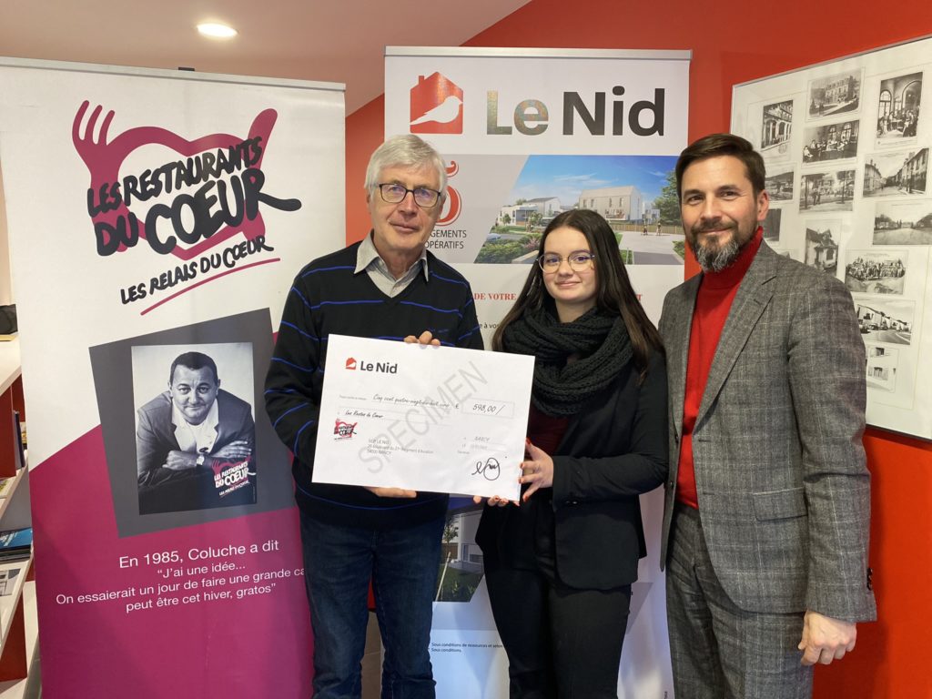 La société @Le Nid a renouvelé son don du solde des tickets restaurants 2022 aux Restos du Cœur non utilisés, lors d’une petite réception le vendredi 13 janvier 2023 au cours de laquelle @Chloé Adams, notre assistante en alternance accompagnait @Alexandre Bousard, directeur général, pour la remise symbolique à M. Robert Larose.