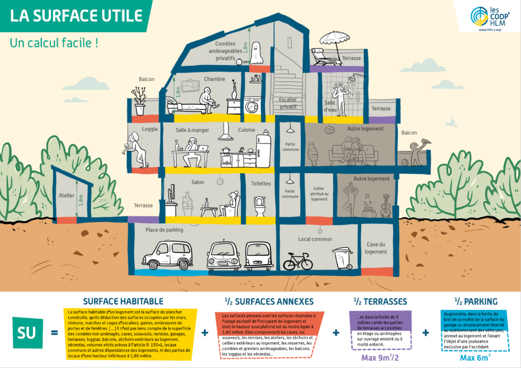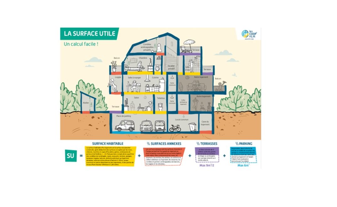 La surface utile sert de base de calcul pour évaluer le montant des habitations à loyers modérés (HLM).