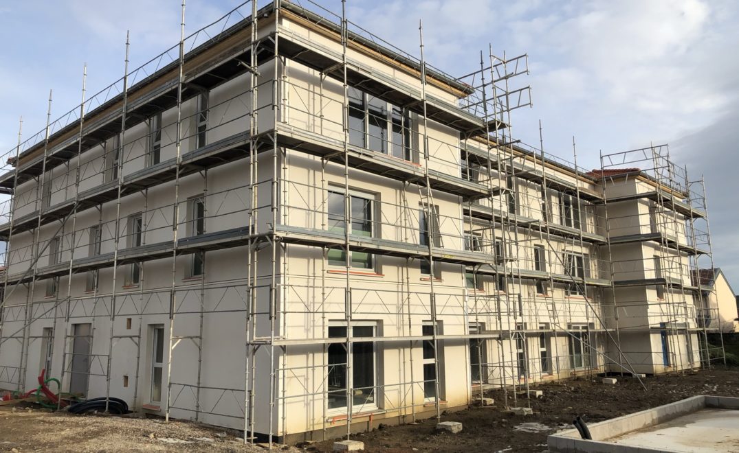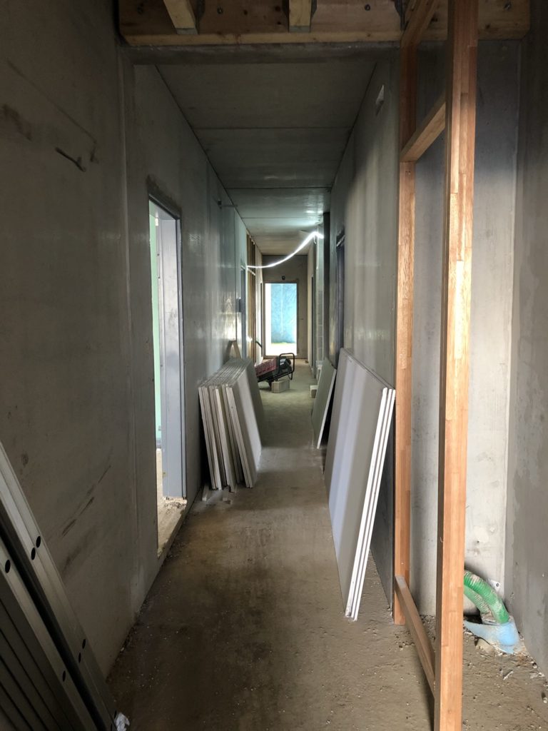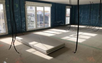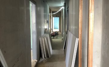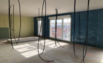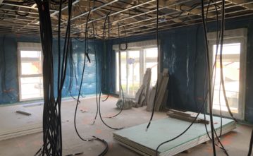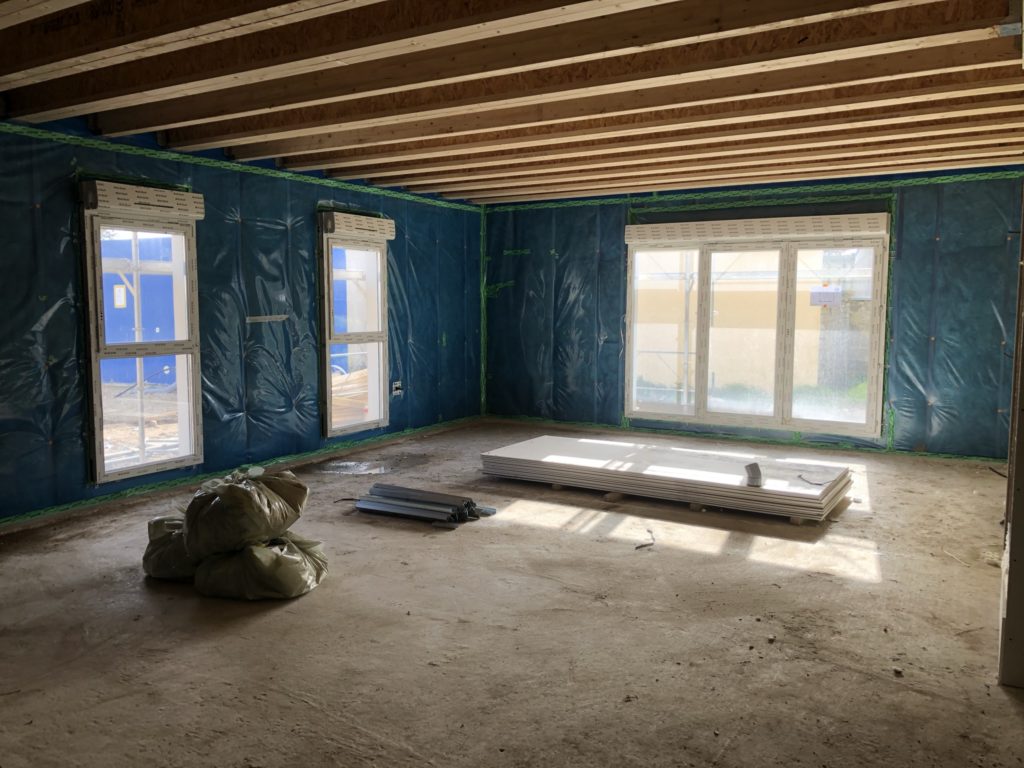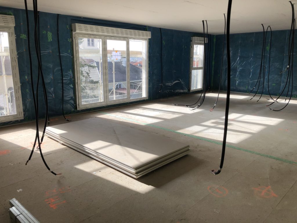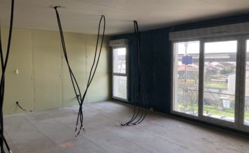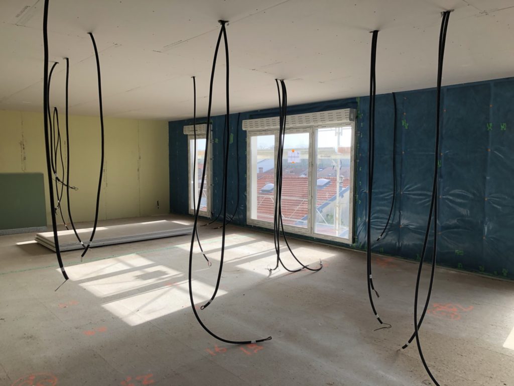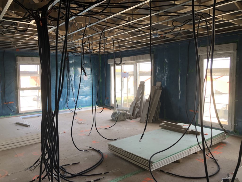 Les entreprises sont en plein travaux à l'intérieur du bâtiment.