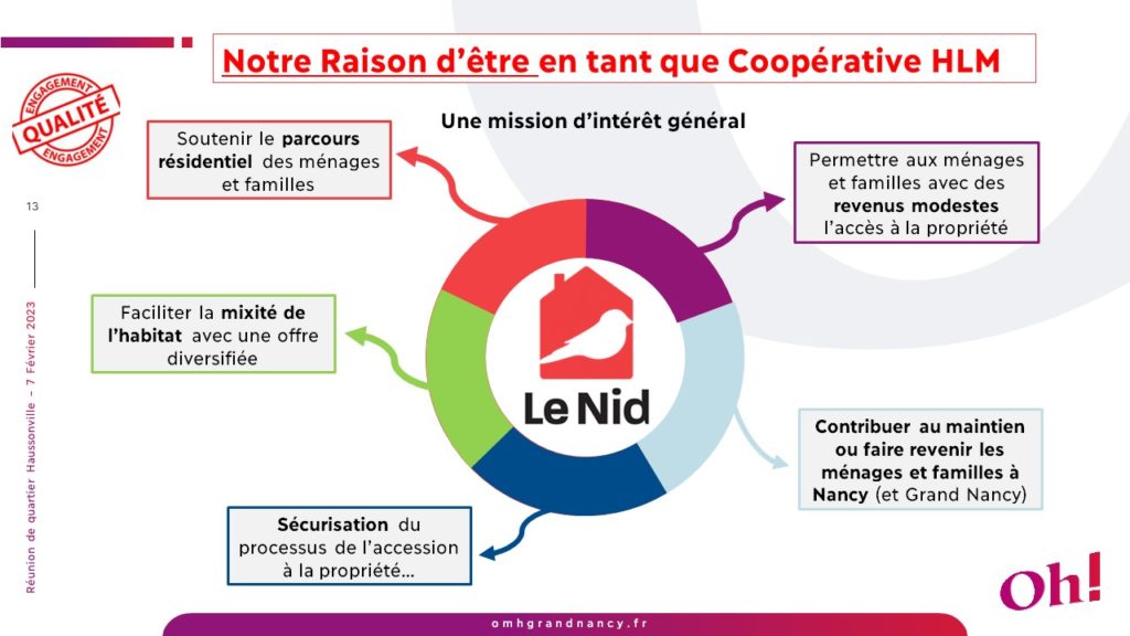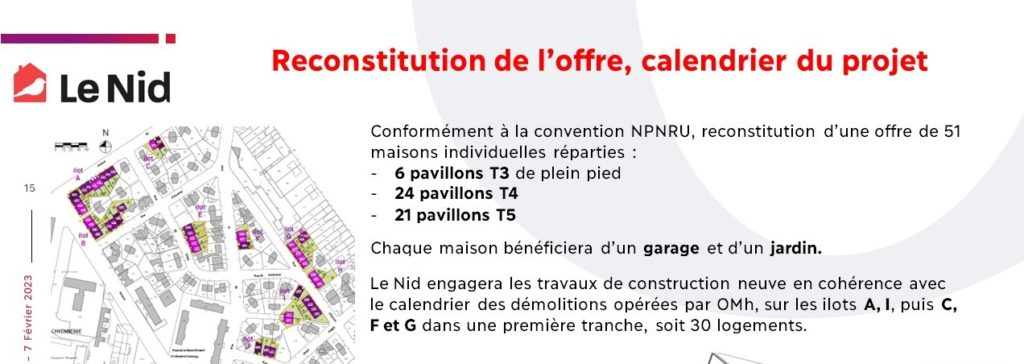 La société Le Nid est intervenue, par la voix de son directeur général, Alexandre Bousard, pour exposer que conformément à la convention NPNRU, elle reconstituera une offre de maisons individuelles en accession sociale et sécurisée à la propriété.