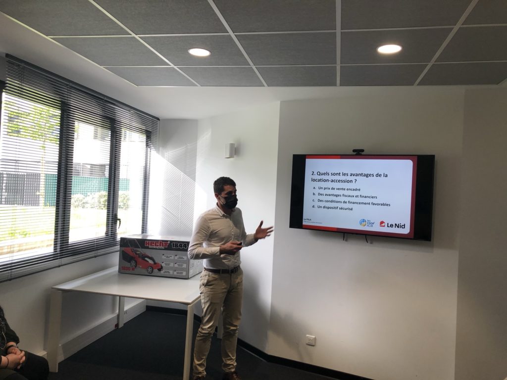 Afin d’ajouter une note ludique, nous avons terminé par un quiz auquel les invités ont pu participer via leur smartphone : ce fut l’occasion pour eux de tester leurs connaissances à la fois sur l’organisation d’une société coopérative de production, et également sur le dispositif de la location-accession.