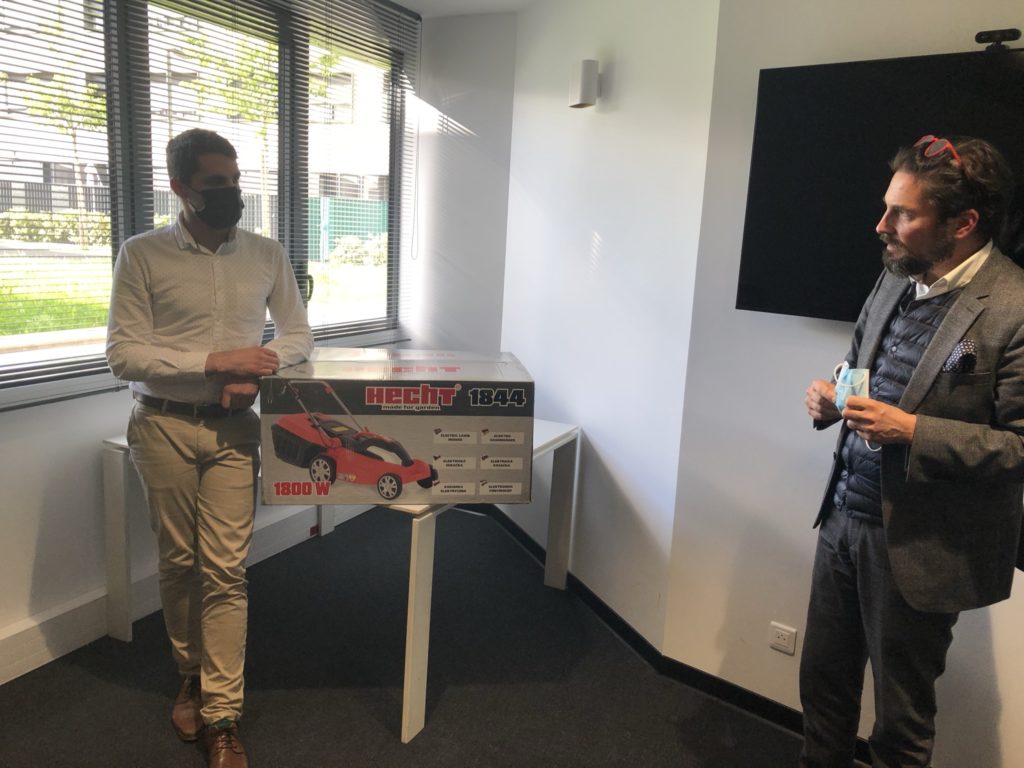 Avant de partager le verre de l’amitié, nous avons dévoilé la surprise à nos clients : Le Nid a fait l’acquisition d’une tondeuse à gazon électrique, destinée à l’entretien des jardins privatifs.
